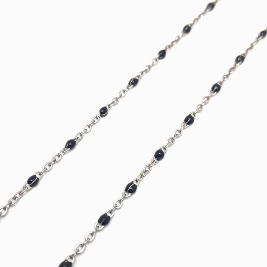 Pack 2un Fio Elo Oval Achatado com Verniz Preto - Aço Inox