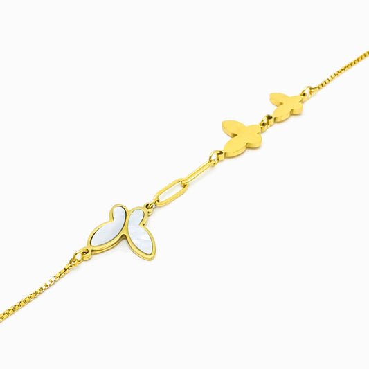 Pulseira Borboletas com Madrepérola - Aço Inox