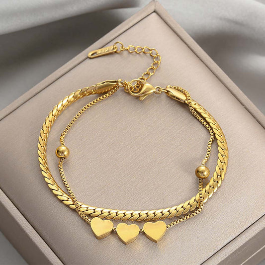 Pulseira Dupla com Corações SL1040 - Aço Inox