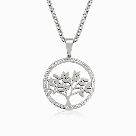 Collana Albero della Vita CL0160 - Acciaio Inox con Quarzo Bianco