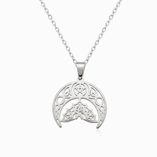 Collana con Pentagramma, Luna e Pipistrello Forato CL0142 - Acciaio Inox